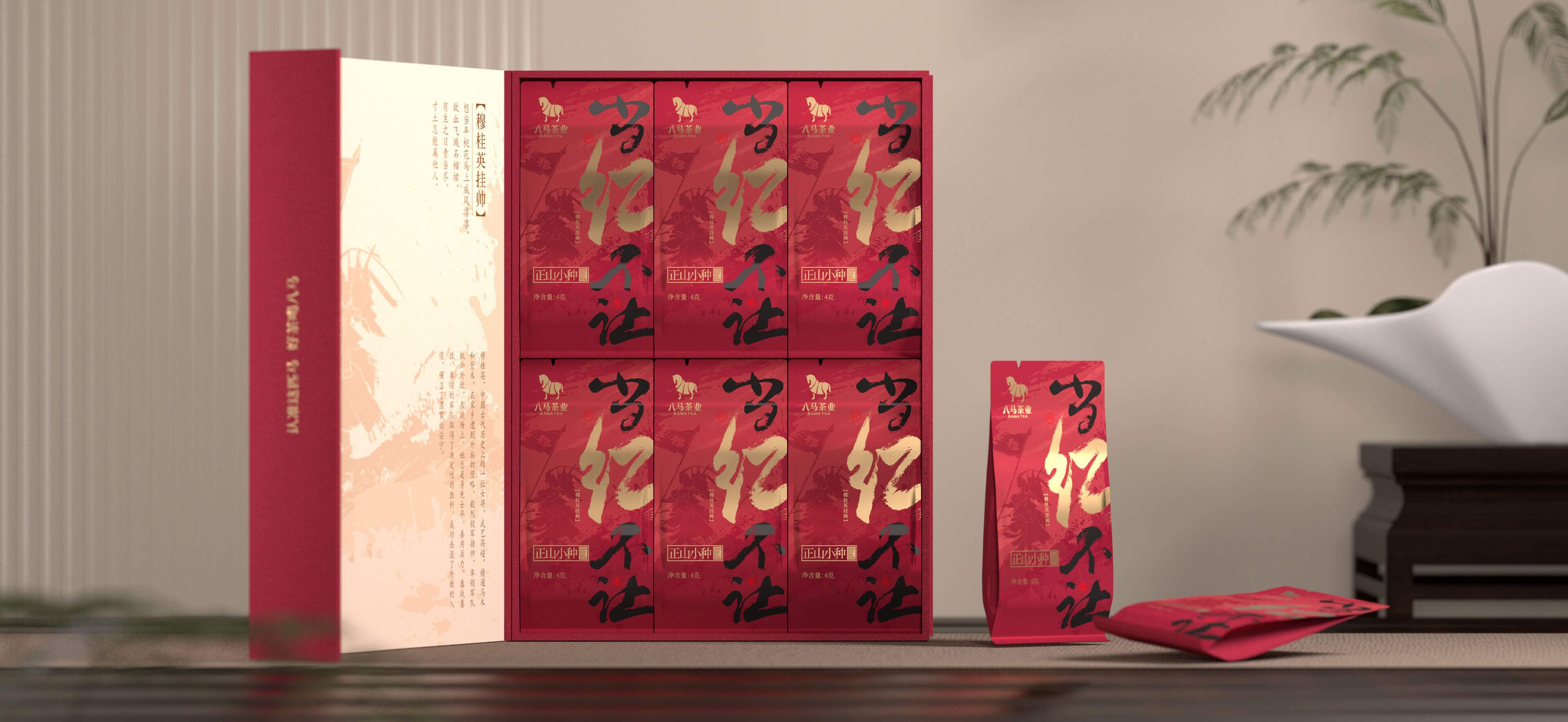 茶以書法助興,書法以茶釋懷,相得益彰。以“國粹”引領(lǐng)新風(fēng)尚更顯態(tài)度,產(chǎn)品主視覺文案設(shè)計(jì)上選擇中國“國粹”-書法字體,突出八馬品牌的文化內(nèi)涵以及國風(fēng)格調(diào)。
