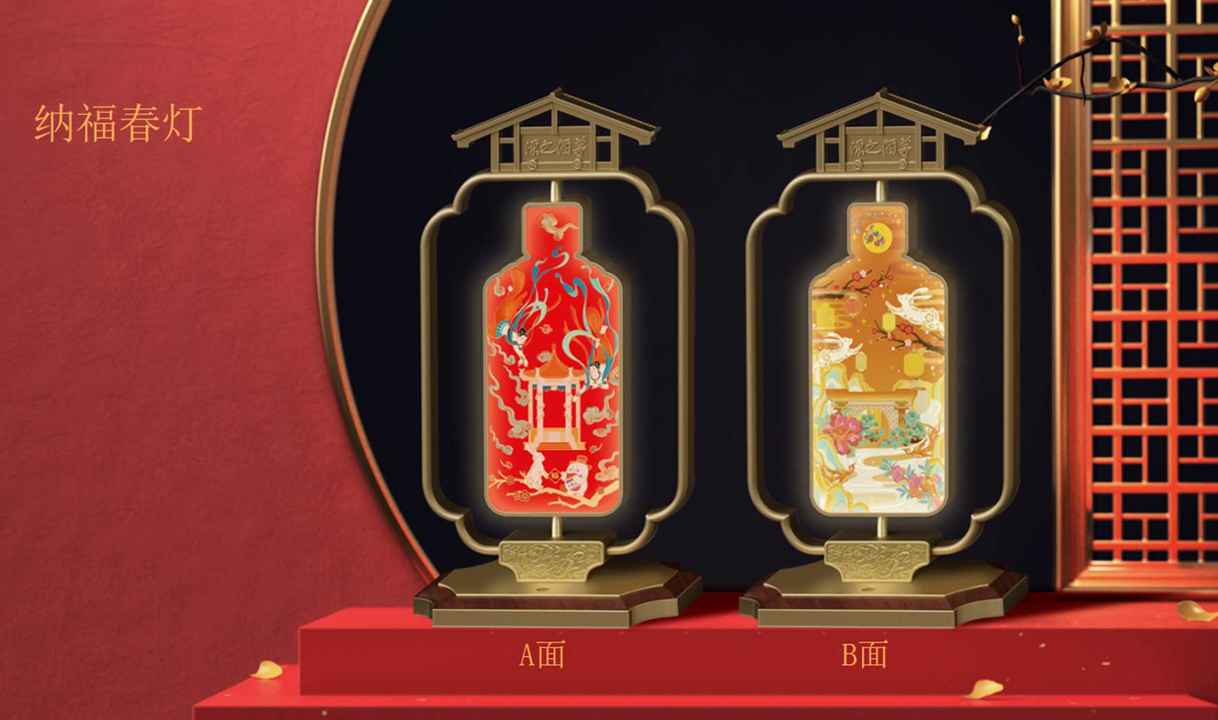 將茅臺酒文化與中國春節(jié)花燈文化相結(jié)合把茅臺酒釀酒工業(yè)遺產(chǎn)群的門匾“茅酒之源融入傳統(tǒng)春燈造型中,點亮春燈,祥和光輝相互照映設(shè)計師在延續(xù)茅臺經(jīng)典品牌印記的同時,在春燈上用了原創(chuàng)插畫和茅型瓶經(jīng)典符號做了創(chuàng)變可兩面翻轉(zhuǎn)增添節(jié)日樂趣。