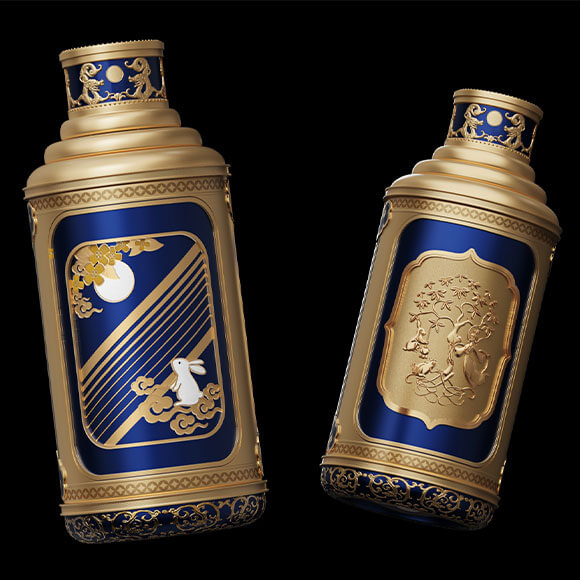 望遠(yuǎn)鏡設(shè)計(jì)靈感源自茅臺(tái)酒瓶型,巧妙融合中秋文化。標(biāo)牌圖案結(jié)合茅臺(tái)經(jīng)典斜線標(biāo)與唐代月宮紋鏡,融合嫦娥、玉兔、桂花、圓月等元素,彰顯茅臺(tái)與中秋的獨(dú)特聯(lián)結(jié)。