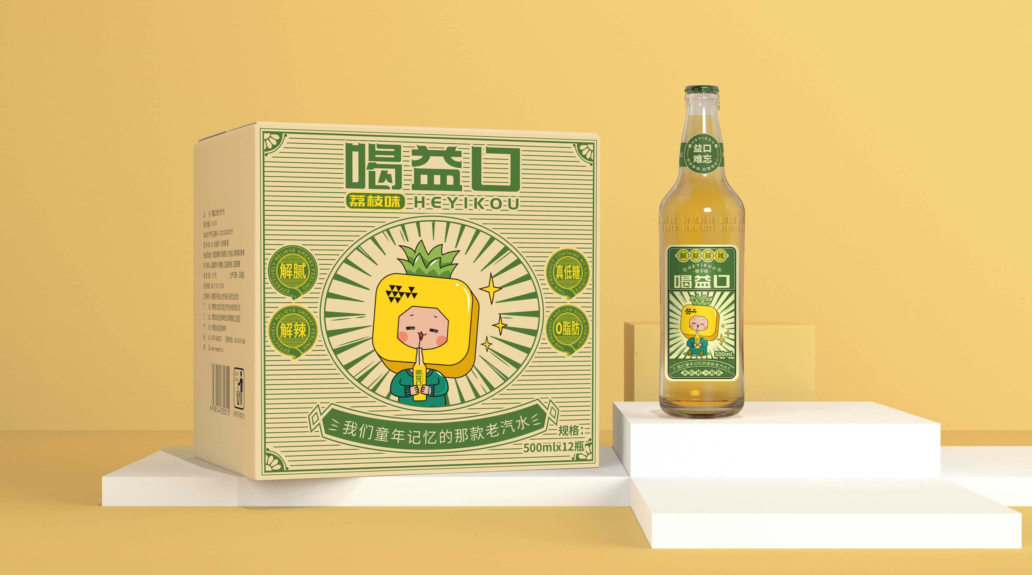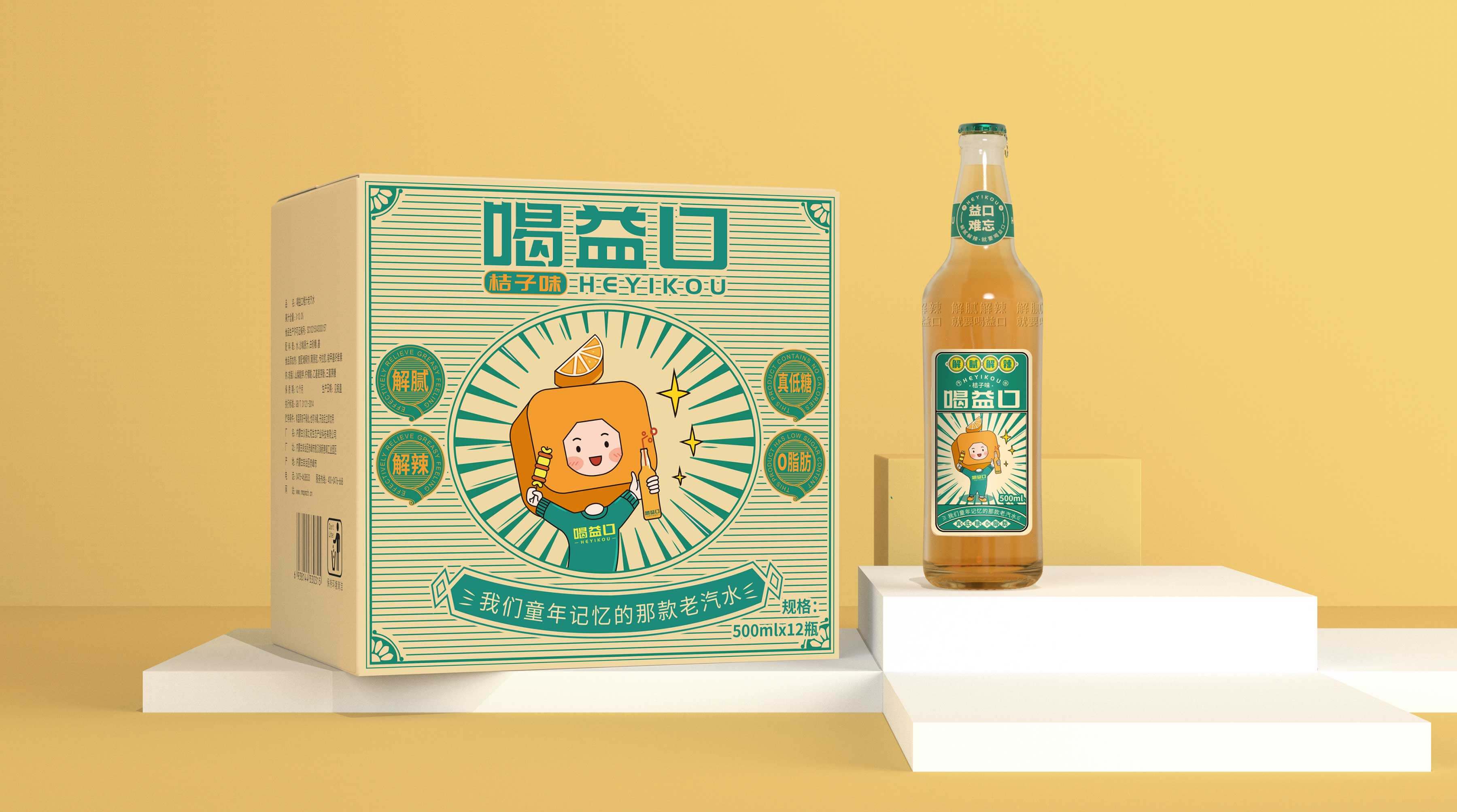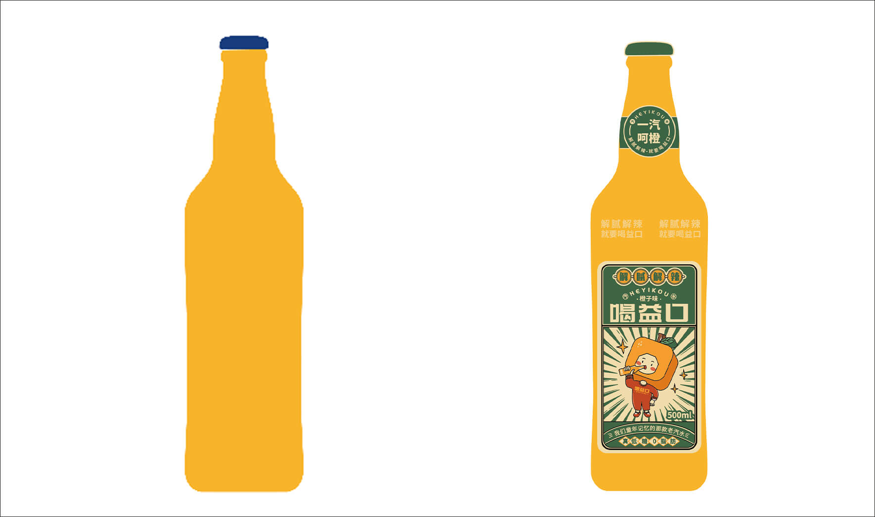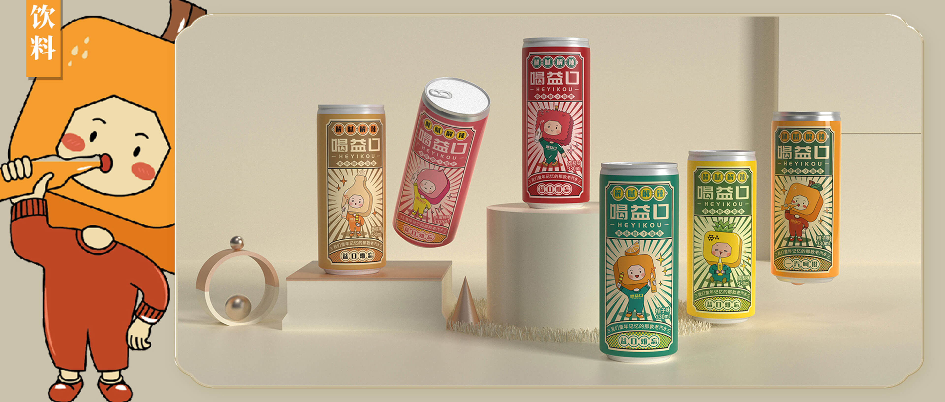 喝益口,華抒飲品企業(yè)旗下的汽水品牌,在南方有較深的線下渠道資源。當(dāng)前國貨興起,老汽水紛紛回歸,分割新型碳酸飲料市場。為此,華抒飲品預(yù)打造一款橙汁味汽水以適應(yīng)市場需求,并與柏星龍合作打造喝益口品牌資產(chǎn)和產(chǎn)品形象。要解決的問題:幫助品牌建立專屬形象,提高品牌識別,從而讓更多的消費(fèi)者認(rèn)識喝益口,記住喝益口并且愿意購買喝益口。