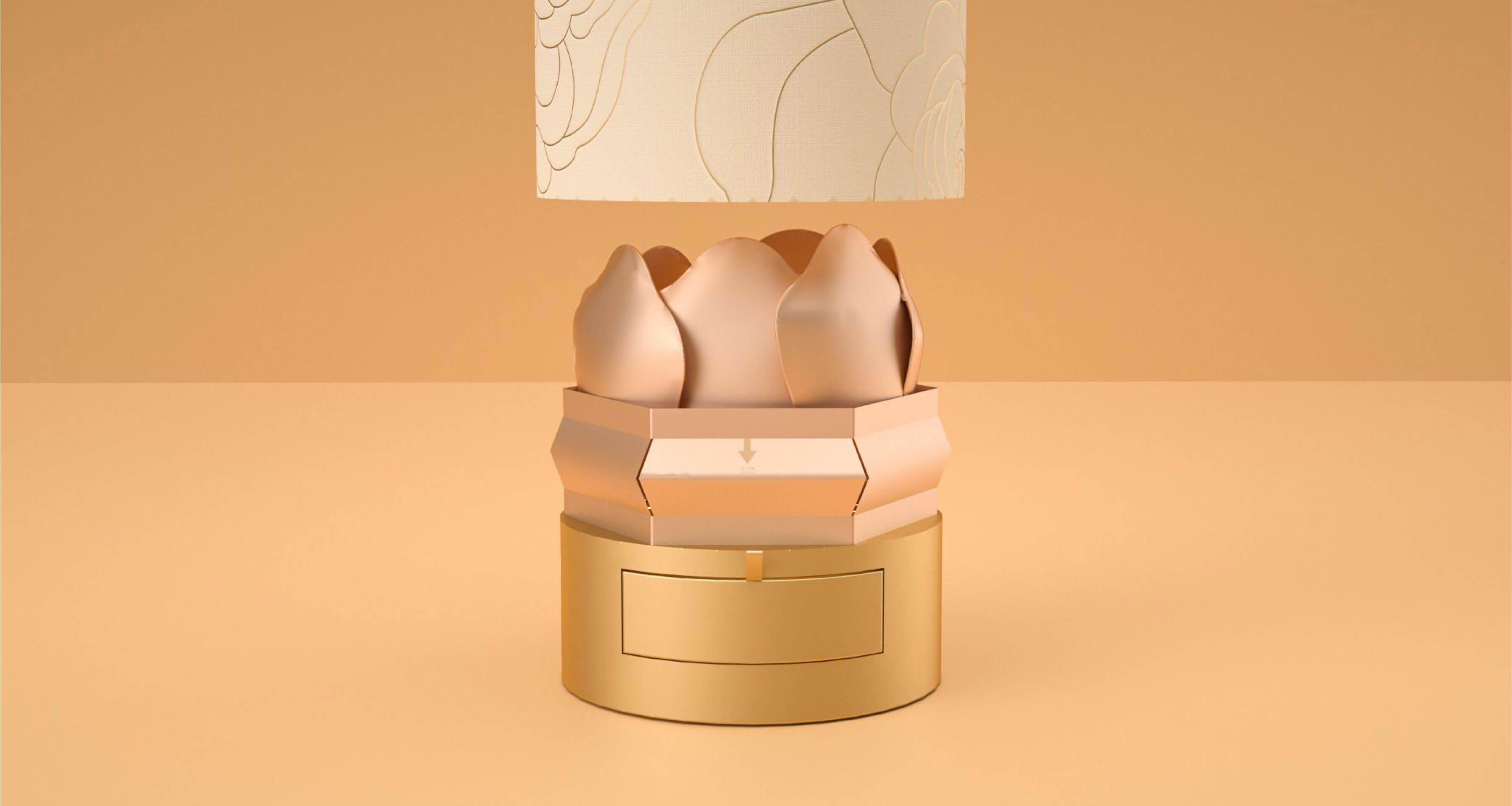 設(shè)計(jì)理念源于對(duì)奢華、尊貴與科技的深度解讀。我們以圓形盒型為基礎(chǔ),線條流暢、簡(jiǎn)約大方,既符合現(xiàn)代審美,又能凸顯出產(chǎn)品的尊貴與高雅。在色彩選擇上,采用經(jīng)典的金色作為主色調(diào),代表著奢華與尊貴,又能吸引消費(fèi)者的目光。